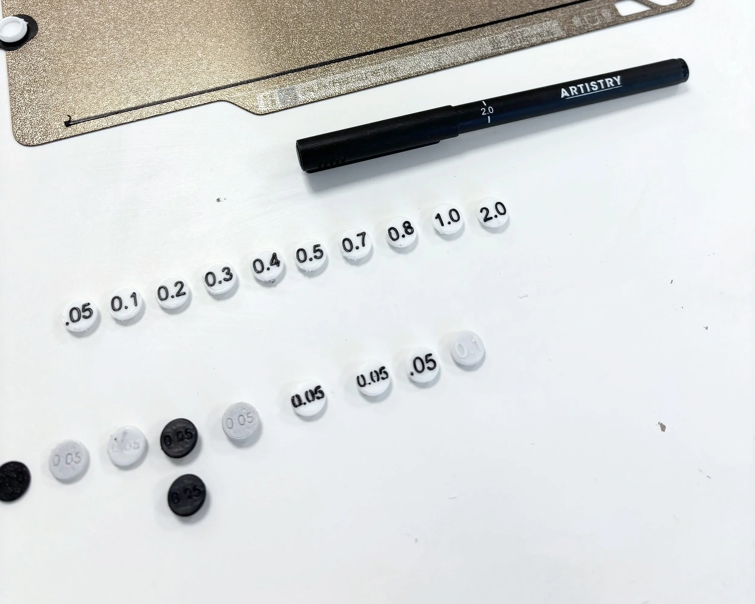 The goal: a snap-fit “lid topper” that seats cleanly into the circular groove on each cap and clearly communicates nib size at a glance.