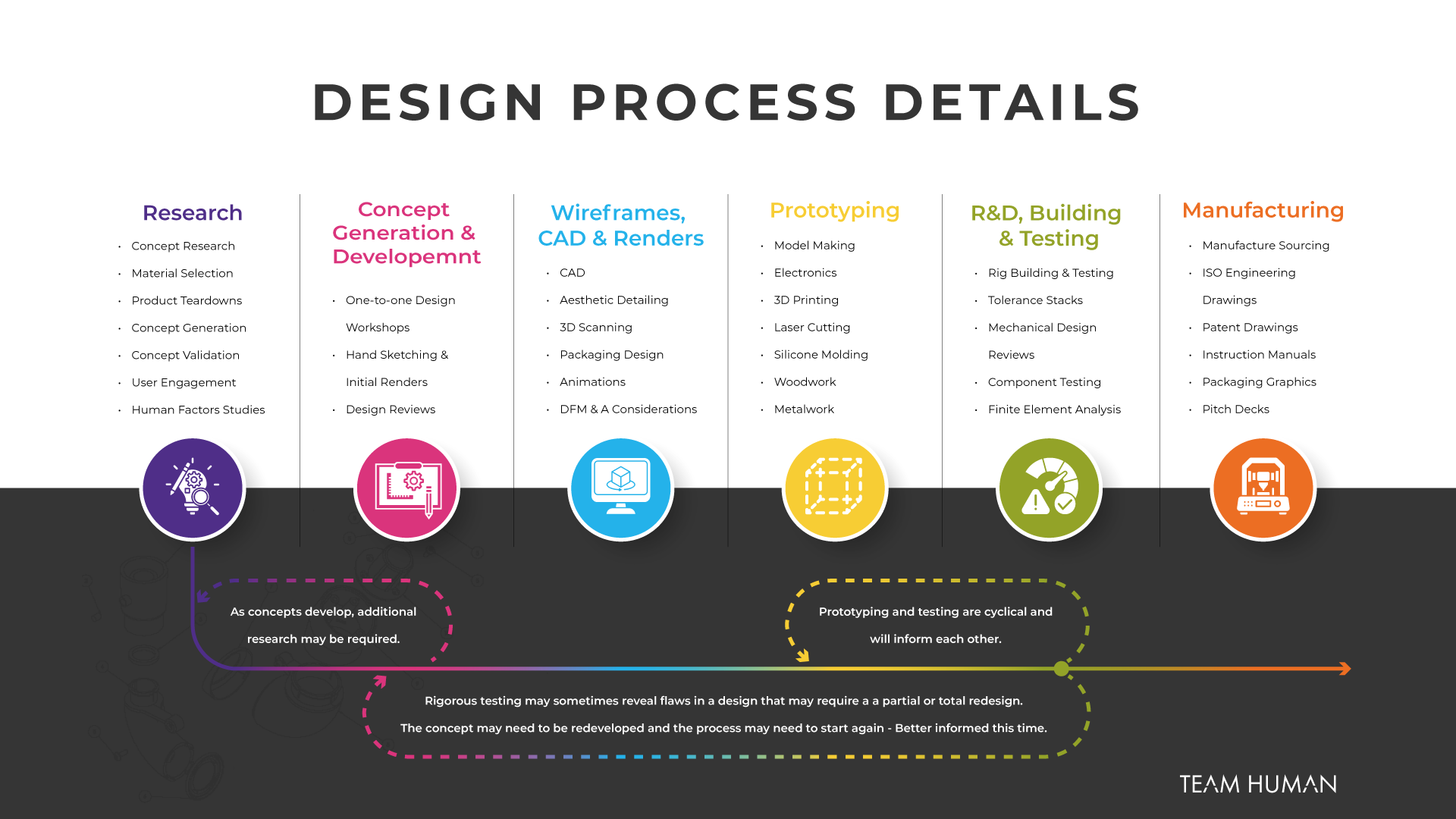 Our team will produce detailed R&D plans, working with the client to plan, build, test and iterate.